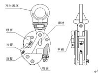 1.1 豎吊鋼板起重鉗(以下簡(jiǎn)稱豎鉗),采用低合金高強(qiáng)度結(jié)構(gòu)鋼制造并熱處理而成。豎鉗具有萬(wàn)向吊環(huán),使用范圍廣、安全和靈活等特點(diǎn)。